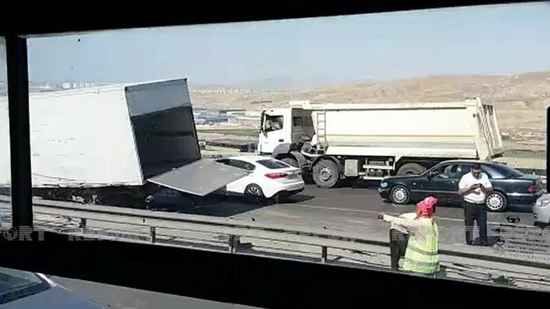 Belə ki, iki yük avtomobili toqquşub. Qəza zamanı avtomobillərdən biri aşıb. Nəticədə avtomobillərə və yolun kənarındakı təhlükəsizlik məqsədilə quraşdırılmış dəmir məhəccərlərə ciddi ziyan dəyib.