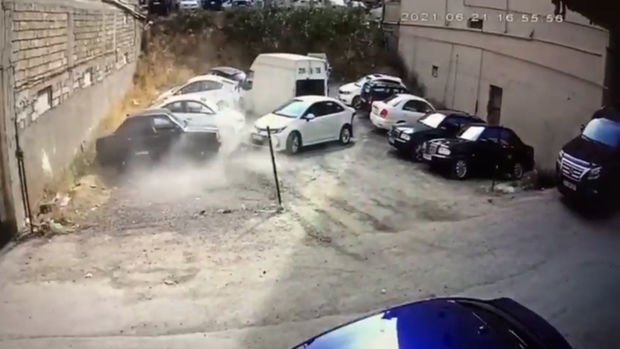 Bakıda sürücü əyləclə qazı səhv saldı: Ağlasığmaz qəza baş verdi – VİDEO
