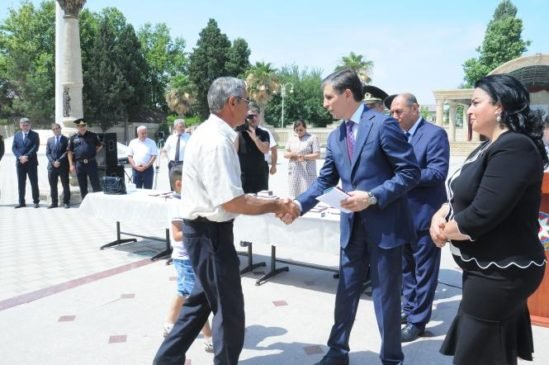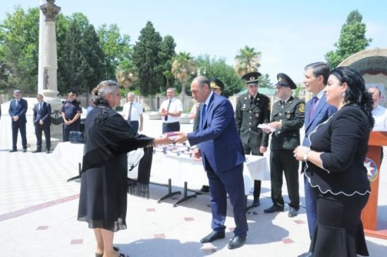 Bərdədə 26 İyun – Silahlı Qüvvələr Günü şəhid ailələrinə və Vətən müharibəsi iştirakçılarına orden və medallar təqdim olunub