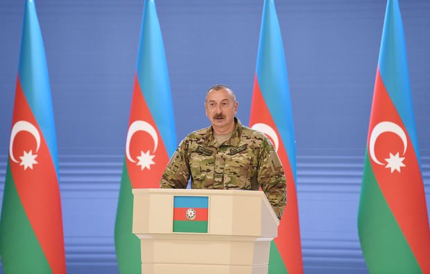 “Hər il bu bayramı qeyd edərkən biz özümüzə söz verirdik ki, nəyin bahasına olursa-olsun doğma torpaqlarımızı işğalçılardan azad edəcəyik. Bu gün qürur hissi ilə deyə bilərəm ki, biz Silahlı Qüvvələr Gününü müzəffər ordu kimi, qalib xalq kimi qeyd edirik. Bu, tarixi nailiyyətdir. Azərbaycan xalqının çoxəsrlik tarixində buna bənzər parlaq zəfər olmamışdır. Biz bütün gücümüzü səfərbər edərək düşmənə sarsıdıcı zərbələr endirib, düşməni məğlub etdik, tarixi ədaləti və ölkəmizin ərazi bütövlüyünü bərpa etdik.