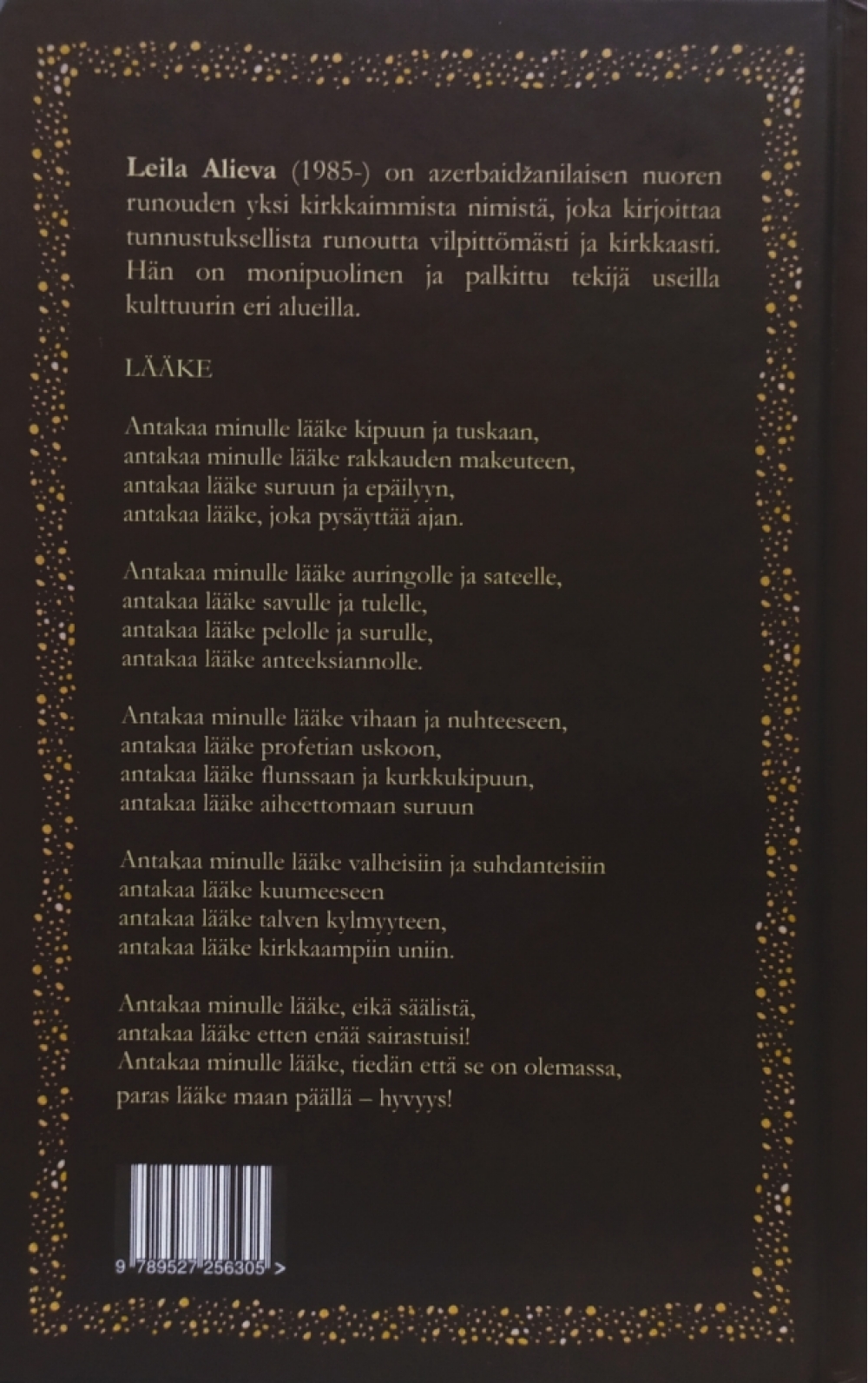 Kitab Diasporla İş üzrə Dövlət Komitəsinin dəstəyi ilə Finlandiyanın “Palladium kirjat” nəşriyyatında fin dilində nəşr olunub. Kitabın ön sözündə Leyla Əliyevanın bioqrafiyası və lirikası barədə oxuculara məlumat verilib, onun sosial və ictimai fəaliyyətindən geniş bəhs olunub. Kitab fin dilində 800 nüsxə çap olunub.