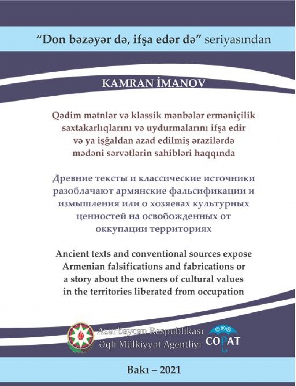 ARANTV.AZ xəbər verir ki, Əqli Mülkiyyət Agentliyinin İdarə Heyətinin sədri professor Kamran İmanovun müəllifi olduğu və Azərbaycan, ingilis və rus dillərində olan bu kitabda tarixi faktlara istinad olunaraq erməni mifləri dağıdılıb və əsl həqiqətlər üzə çıxarılıb.