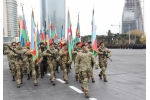 Vətən Müharibəsi Qəhrəmanı general-mayor Zaur Məmmədovun başçılıq etdiyi döyüş bayraqdarları qrupu Böyük Qələbənin qazanılmasında müstəsna xidmətləri olan hərbi hissələrin döyüş bayraqlarını Azadlıq meydanına gətirib.