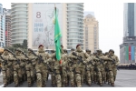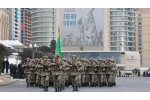 Ardınca Hərbi Dəniz Qüvvələrinin dəniz piyadaları birinci dərəcəli kapitan Zaur Quliyevin başçılığı ilə tribuna önündən keçiblər.