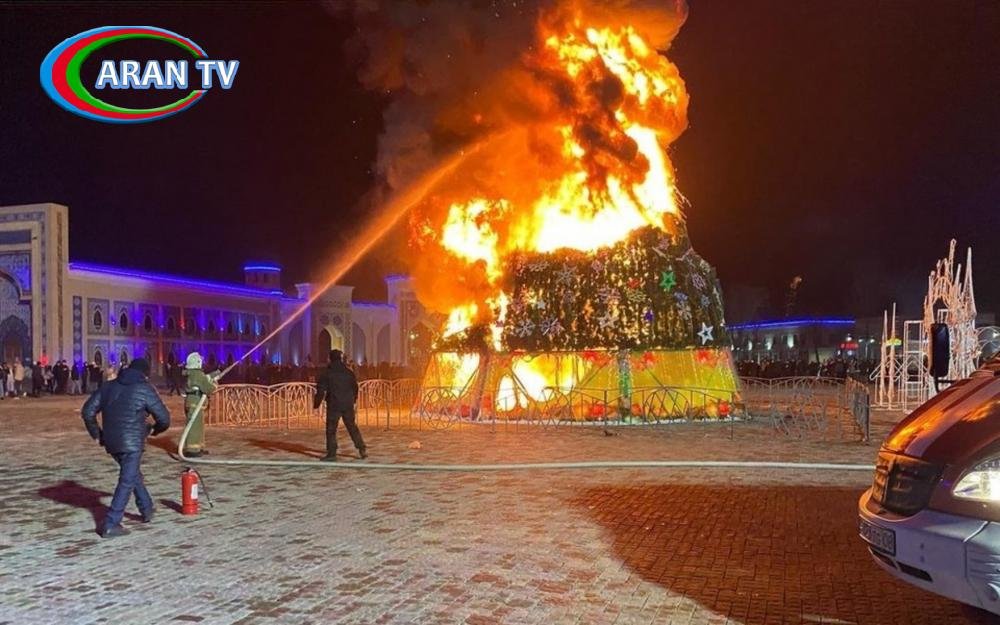 Qazaxıstanın cənubunda yerləşən Taraz şəhərində yeni il şənliyi zamanı bayram üçün bəzədilən şam ağacı yanıb.