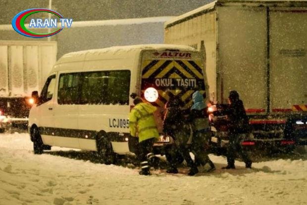 Türkiyənin İstanbul şəhərinə yağan güclü qar həyatı iflic edib.