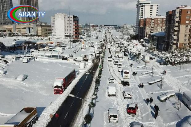 Türkiyənin İstanbul şəhərinə yağan güclü qar səbəbiylə dünəndən çox sayda insan Hadımköydə yolda qalıb.