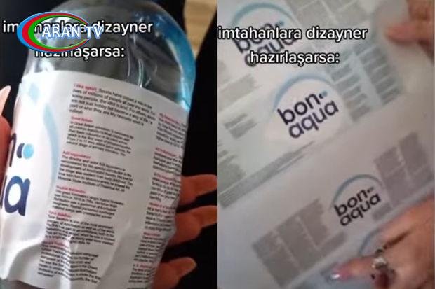 Belə ki, tələbələr plastik su şüşəsinin etiketini yenidən dizayn edərək üzərinə xırda hərflərlə imtahan suallarının cavablarını yazıblar.