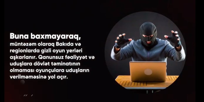 Hazırda təqdim olunan videoda qanunsuz mərc oyunları ilə bağlı maarifləndirici məlumat verilir.
