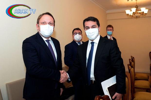 Prezident Administrasiyasının Xarici siyasət məsələləri şöbəsinin müdiri Hikmət Hacıyev Avropa İttifaqının (Aİ) Qonşuluq Siyasəti və Genişlənmə danışıqları üzrə komissarı Oliver Varhelylə görüşüb.