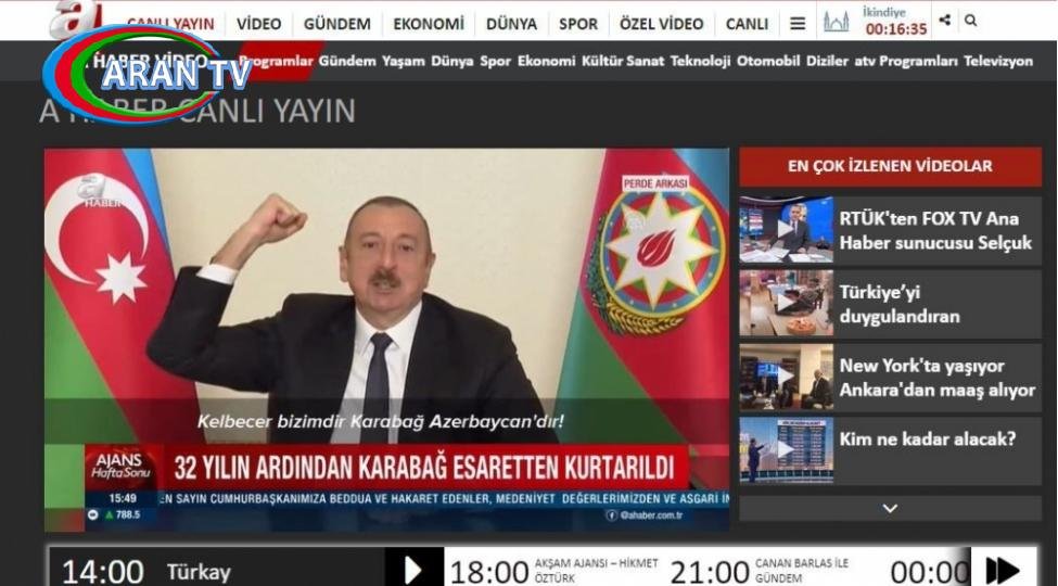 ARANTV.AZ xəbər verir ki, fevralın 6-da “A Haber” telekanalında yayımlanan “Qarabağ 32 ildən sonra əsarətdən xilas edildi” sərlövhəli xüsusi reportaj da bu mövzuya həsr olunub.