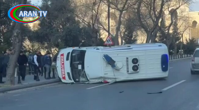 Bakıda təcili tibbi yardım maşını aşıb.