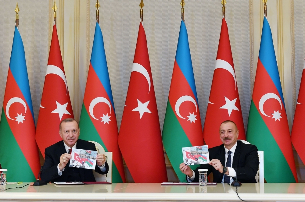 Azərbaycanın 44 günlük Vətən müharibəsindən sonra 2020-ci il dekabrın 10-da Bakının Azadlıq meydanında Vətən müharibəsində Qələbəyə həsr olunmuş Zəfər Paradı keçirildi. Daha sonra Prezident İlham Əliyevin və Prezident Rəcəb Tayyib Ərdoğanın iştirakı ilə Azərbaycan – Türkiyə arasında 5 mühüm sənədin imzalanması mərasimi oldu. Bunun ardınca Azərbaycan Prezidenti İlham Əliyev və Türkiyə Prezidenti Rəcəb Tayyib Ərdoğan mətbuata birgə bəyanatlarla çıxışlarında vurğuladılar ki, hər zaman hər iki dövlət bütün məsələlərdə bir yerdə olmuş, eyni mövqedən çıxış edərək bir-birinin yanında olmuşlar. Qarabağ məsələsinin hər zaman Türkiyə üçün də eyni dərəcədə ağrılı problem olduğunu bildirən Rəcəb Tayyib Ərdoğan Azərbaycanın sevinci, bizim sevincimizdir, qüruru bizim qürurumuzdur, dərdi, ağrısı, problemi də bizim problemimizdir, Azərbaycan kədərlənərsə, biz də kədərlənərik, Azərbaycan sevinərsə, biz də sevinərik sözlərini diqqətə çatdırmış və ölkəmizin haqlı mübarizəsini qətiyyətlə müdafiə edərək deyib: “Həqiqətən 44 günlük bir müharibədən sonra ortaya çıxan nəticə Azərbaycandakı qardaşlarımı necə sevindirdisə, eyni dərəcədə Türkiyədəki qardaşlarını da sevindirmişdir. Bu, istər şəxsimizdə, istər bütün millətimizin şəxsində yaşanan bir sevincdir. İstər hökumətimiz olaraq, istərsə də parlamentin böyük bir qismi olaraq bu sevinci bərabər yaşadıq. Bu sevincə xüsusilə də yazılı, görüntülü medianın da böyük bir qismi eyni dərəcədə qatıldı və bu Zəfəri birlikdə daim qeyd etdilər, mesajlarını da bu istiqamətdə çatdırdılar”.