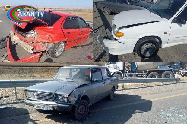 ARANTV.AZ xəbər verir ki, hadisə zamanı BMW markalı maşının sürücüsü idarəetməni itirərək, nəqliyyat vasitəsini VAZ-2107 və VAZ-2114 markalı avtomobillərə çırpıb.