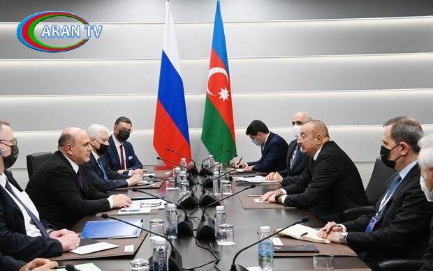 Daha sonra Prezident İlham Əliyev ilə Rusiya Federasiyası Hökumətinin sədri Mixail Mişust arasında görüş olub.