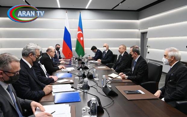 Daha sonra Prezident İlham Əliyev ilə Rusiya Federasiyası Hökumətinin sədri Mixail Mişustin arasında görüş oldu.