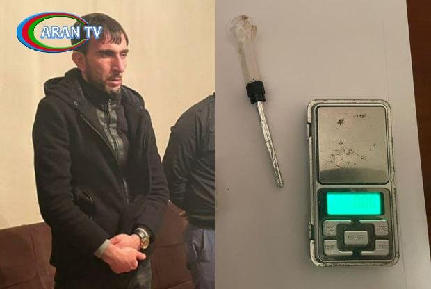 Üzərinə keçirilən baxış zamanı ondan külli miqdarda narkotik vasitə olan heroin və metamfetamin qalıqları olan şüşə qab aşkarlanaraq maddi sübut kimi götürülüb.