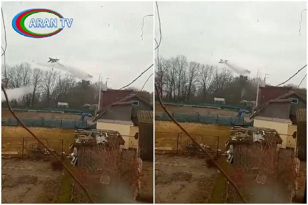 Sosial şəbəkələrdə yayılan videoda rus aviasiyasının yaşayış evlərini hədəfə aldığı görünür.