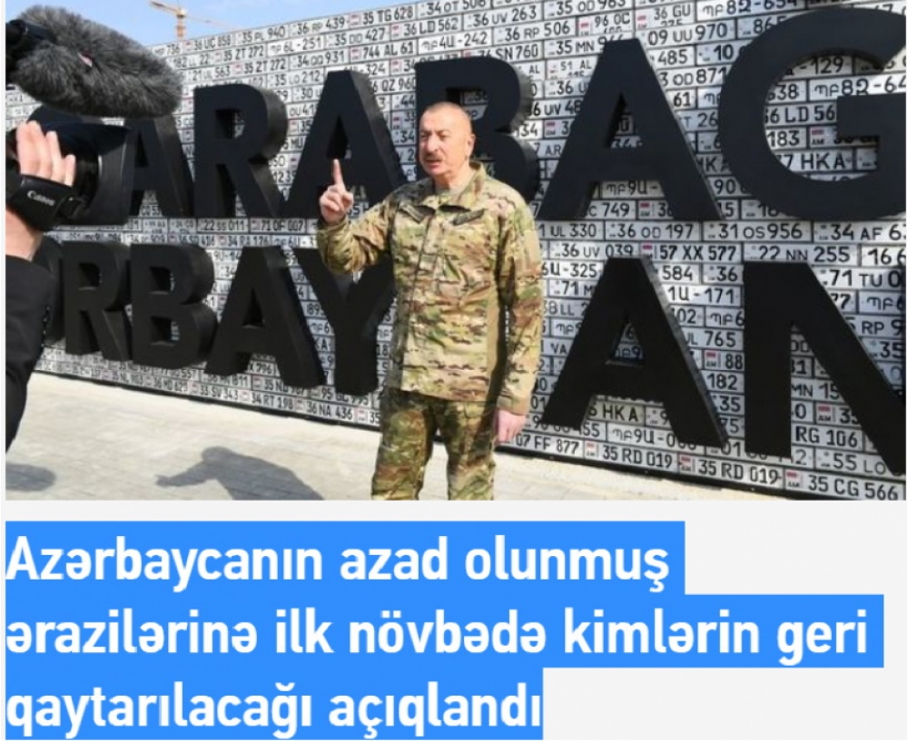 Xəbərlərdə Azərbaycan Prezidentinin işğaldan azad olunmuş ərazilərə qayıdışın ilkin mərhələsi, Milli Məclisin deputatlarının AVRONEST PA-nın iclasındakı iştirakı və digər məsələlər barədə fikirləri əksini tapıb.
