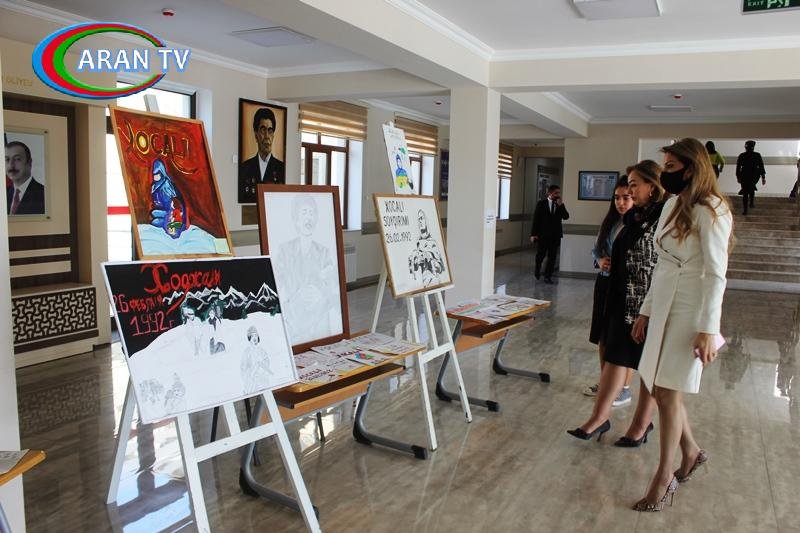 Tədbirdə iştirak edənlər məktəbin foesində Xocalı faciəsinə həsr olunmuş rəsm sərgisi ilə tanış olublar.