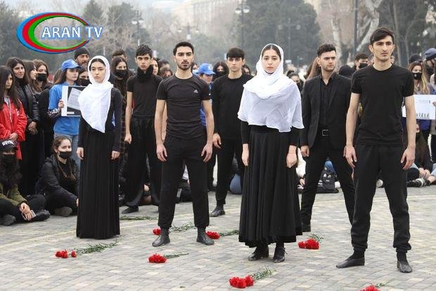 Tələbə gənclər və könüllülər Xocalı Soyqırımının 30-cu ildönümünə həsr olunmuş fləşmob keçiriblər – FOTO