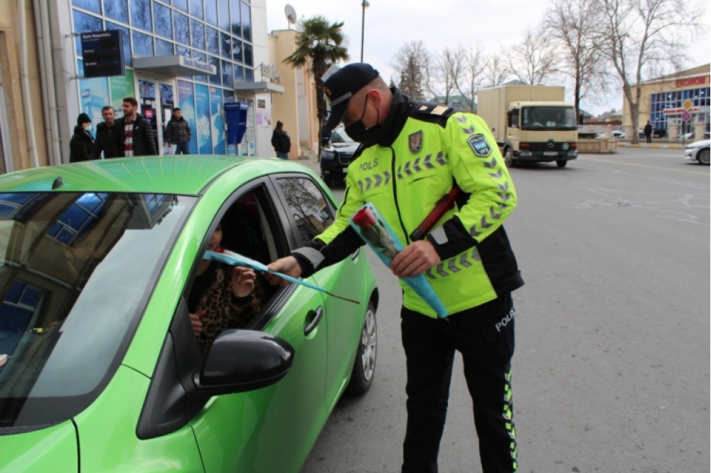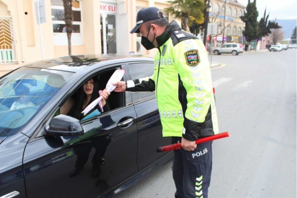 Daxili İşlər Nazirliyinin mətbuat xidmətinin Şəki regional qrupundan “İki sahil”ə bildiriblər ki, şəhərin küçə və prospektlərində, xüsusilə mərkəzi yollarda sükan arxasında olan 30-a yaxın qadın sürücü saxlanılıb. Polis əməkdaşları həmin sürücüləri, eləcə də nəqliyyat vasitəsində olan xanımları, azyaşlıları təbrik edərək onlara gül və müxtəlif hədiyyələr veriblər.