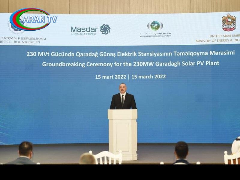 ARANTV.AZ AZƏRTAC-a istinadən bildirir ki, bunu Prezident İlham Əliyev martın 15-də Gülüstan sarayında Qaradağ Günəş Elektrik Stansiyasının təməlqoyma mərasimində çıxışı zamanı deyib.