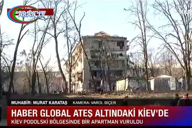 “Haber Global” komandası Kiyevdə sözügedən binada çəkiliş aparıb.