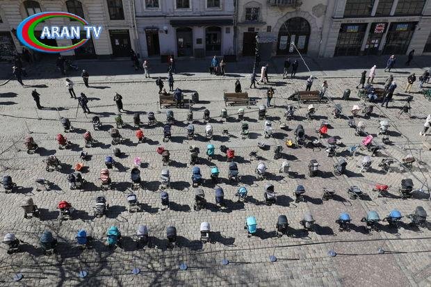 Lvovun mərkəzi meydanında 109 boş uşaq arabası qoyulub.