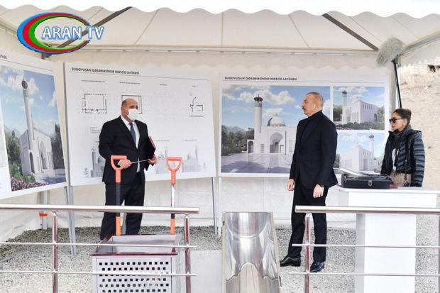Azərbaycan Respublikasının Prezidenti İlham Əliyev və Birinci vitse-prezident Mehriban Əliyeva Tərtər rayonunun Suqovuşan qəsəbəsində yeni tikiləcək məscidin təməlini qoyublar.
