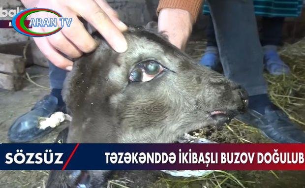 Ağdamda ikibaşlı buzov doğulub – VİDEO