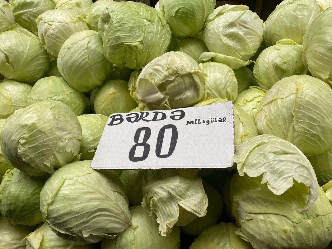 Kələm 80 qəpik, bibər isə 3 manatdır. Badımcan 1.80 manat qiymətlə alıcılara təklif olunur.