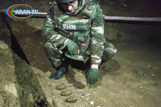 Hüquq-mühafizə orqanlarının əməkdaşları ilə birgə ərazidəki insanlar təhlükəsiz məsafəyə uzaqlaşdırıldıqdan və kənar şəxslərin əraziyə girişi müvəqqəti məhdudlaşdırıldıqdan sonra çevik qrupun mütəxəssisləri tərəfindən hadisə yerinə baxış zamanı aşkar edilmiş sursatların döyüş tətbiqinə yararlı 3 ədəd “F-1” əl qumbarası və “UZRQM-2” markalı qumbaranın 3 ədəd partladıcısı olduğu müəyyən edilib.