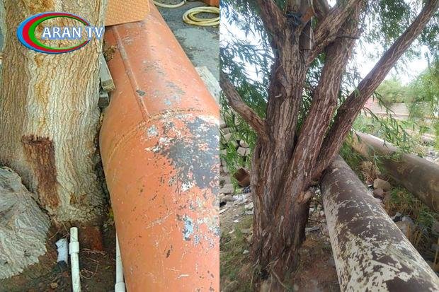 Bəzi yerlərdə ağaclar düz boru xəttinin dibinə əkilib. Aşağıdakı fotoya diqqət edin, ağac böyüdükcə onun gövdəsi boru ilə birləşib və hazırda bu ağaclar boru xətti üçün təhlükə yaradır.