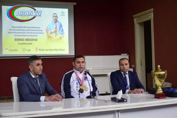 Masallı Rayon Gənclər və İdman İdarəsinin rəisi Sabiq Cahangirov dövlətimizin başçısı, Azərbaycan Milli Olimpiya Komitəsinin Prezidenti İlham Əliyevin rəhbərliyilə idmana göstərilən diqqət və qayğıdan söz açıb, “Çempionumuz” layihəsinin yeniyetmə və gənclər arasında sağlam həyat tərzinin və idmanın təbliğ olunmasında xüsusi önəmini vurğulayıb. Dəvət olunan idmançı barədə məlumat verən S.Cahangirov Bəhruz Mirzəyevə növbəti yarışlarda uğurlar arzulayıb.