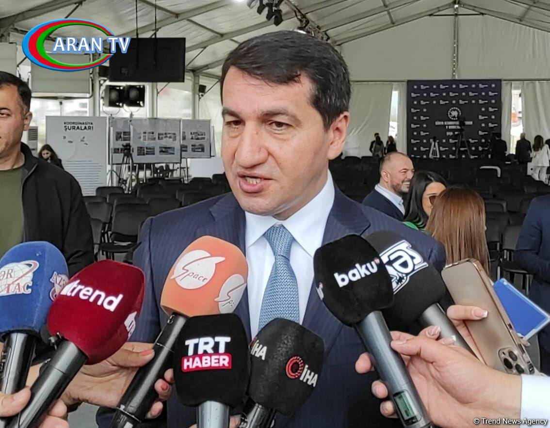ARANTV.AZ Trend-ə istinadən xəbər verir ki, bunu Azərbaycan Respublikası Prezidentinin köməkçisi – Azərbaycan Respublikası Prezidentinin Administrasiyasının Xarici siyasət məsələləri şöbəsinin müdiri Hikmət Hacıyev Şuşada keçirilən Dünya Azərbaycanlılarının V Qurultayında (Zəfər Qurultayı) jurnalistlərə açıqlaması zamanı bildirib.