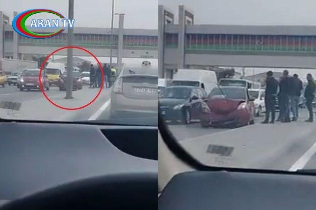 Videodan göründüyü kimi, qəza tıxaca səbəb olub.