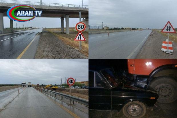 Tikintiyə yaxın ərazidə sürət həddi 40-50 km/saat təyin edilib. Hələ tikintidən xeyli aralıda, qarşıda yolun hərəkət hissəsinin daraldığını göstərən yol nişanı qoyulub. Tikinti ərazisinə bir km qalmış xəbərdarlıq nişanları quraşdırılıb, xüsusi işıqqaytarıcı nişanlar quraşdırılıb. Tikinti ərazisində isə sürət həddi 30 km/saat təyin edilib və yol boyu təhlükəsizlik tədbirləri təmin edilib”.