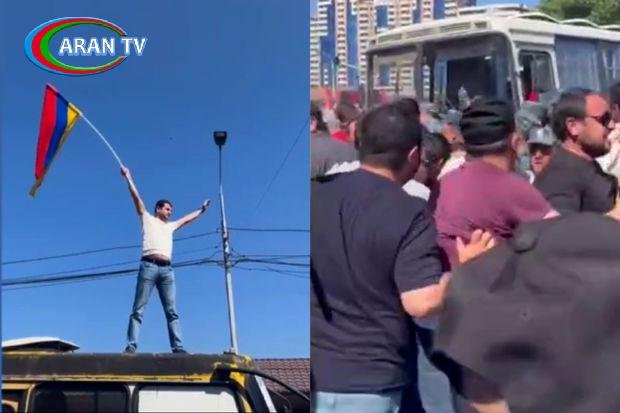 İrəvanda etirazlar: Avtobusun üstündə bayraq qaldıranı polislər yerlə sürüdülər – VİDEO