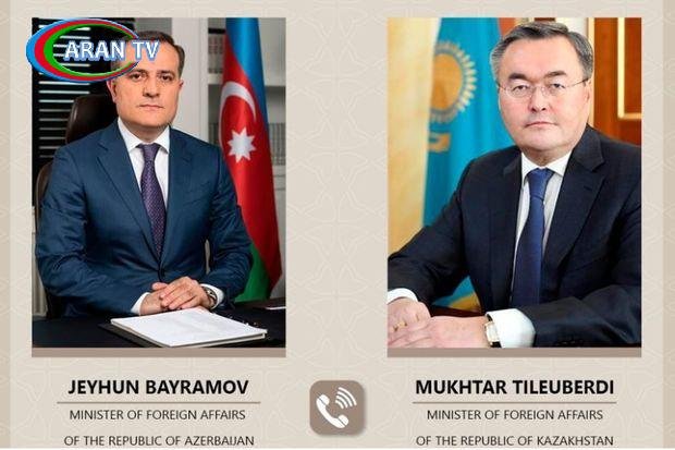 Azərbaycan xarici işlər naziri Ceyhun Bayramov və Qazaxıstan xarici işlər naziri Muxtar Tleuberdı arasında telefon danışığı baş tutub.