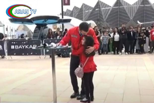 Çıxışı zamanı azərbaycanlı qızcığaz Bayraktarı qucaqladı – VİDEO