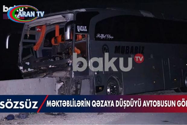 Məktəblilərin qəzaya düşdüyü avtobusun görüntüləri – VİDEO