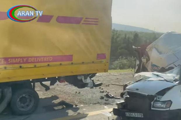 Qəza zamanı 99-LS-319 dövlət nömrə nişanlı, “Ford” markalı mikroavtobus eyni istiqamətdə hərəkətdə olan 99-GY-745 dövlət nömrə nişanlı “Mercedes-Benz” markalı yük maşınına çırpılıb.