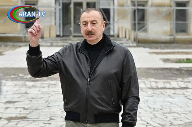 Azərbaycan Prezidenti İlham Əliyev Kəlbəcər rayonunda su istehsalı zavodunun təməlini qoyub.