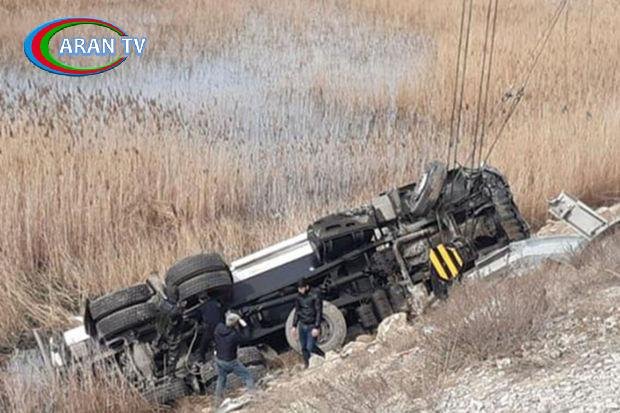 Beyləqan rayonunun İkinci Aşıqlı kəndində “KamAZ” markalı yük avtomobili yol kənarına aşıb.