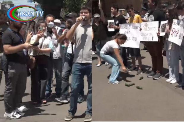 Onlar Ermənistan prezidenti Vaaqn Xaçaturyana etiraz əlaməti olaraq İrəvanda administrasiyanın qarşısına xiyar düzüblər.