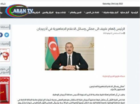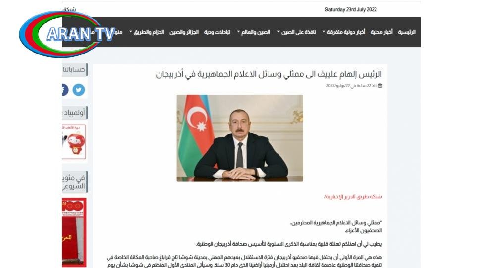 Əlcəzairin “Əl Hərir” portalı isə AZƏRTAC-a istinadla Prezident İlham Əliyevin Azərbaycan mediasına müraciətinin ərəb dilində tam mətnini və “Mediada qlobal trendlər, yeni çağırışlar” mövzusunda Şuşada keçirilən Beynəlxalq Media Forumu haqqında materialı yayımlayıb.