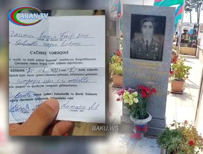 Vətən Müharibəsi Qəhrəmanı Şəhid polkovnik-leytenant Faiq Qasımovun oğlu Zamin Qasımov hərbi xidmətə yollanır.