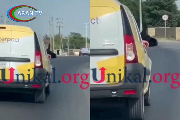 Ayağını maşının pəncərəsindən çıxaran “Azərpoçt” əməkdaşı işdən azad edildi – VİDEO