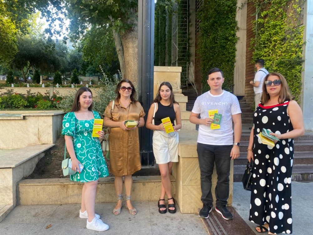 ARANTV.AZ xəbər verir ki, Bakının İçəri şəhər, Fəvvarələr meydanı, Dənizkənarı Milli Park və Sumqayıtın Nəsimi parkı kimi insanların sıx toplandığı yerlərdə təşkilat üzvləri və könüllülər vətəndaşlara bukletlər paylayıb, insan alveri və qaynar xətt haqqında məlumat veriblər.